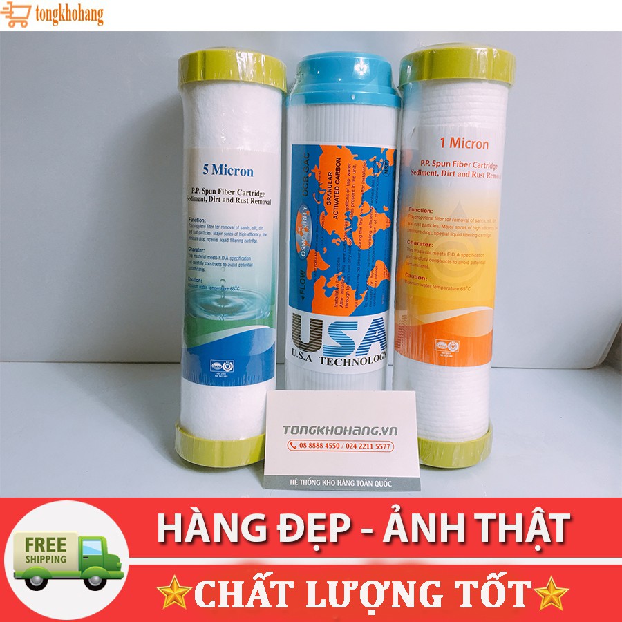 Freeship 99k TQ_Bộ 3 Lõi Lọc Nước(PP 5Micron+UDF+1Micron) RO Dùng Cho Tất Cả Các Loại Máy Lọc Nước