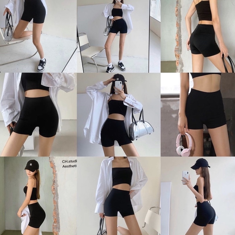 [HÀNG CÓ SẴN] Biker Short - Cycling Short Cạp Cao ( Legging Đùi ) - Quần Short Tập Gym Đen Co Dãn Big Size